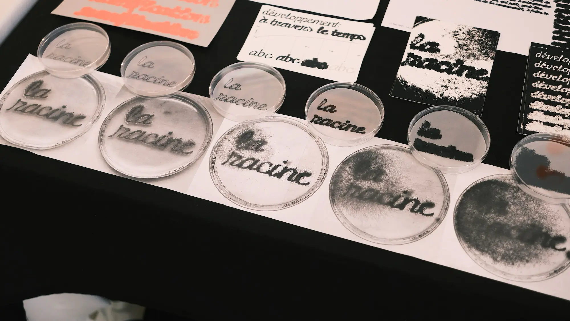 卒制展といっても主に自分たちと家族向けの小規模なもので、昼過ぎには終わってしまうものだった。Joannは非常に硬派な作品を作っていて好きだったのだが、卒制は一転してサビやカビ、金属の腐食を使って字形を荒らした書体とその過程のモーションを制作していた。単純に荒らすだけなら色々な手法があるが、自然現象を使っているのは面白い。